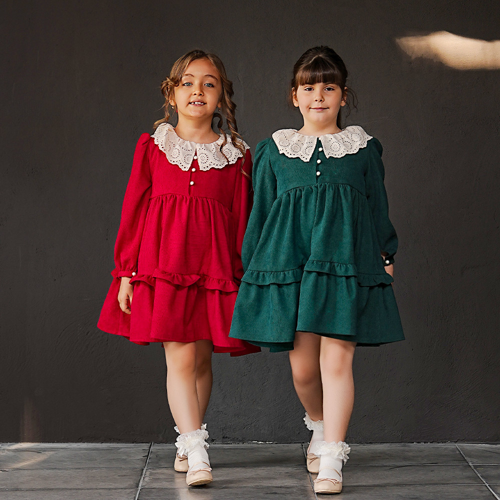 • مدل یقه: گرد با نوار کتان امبرودی چین دار در دور یقه
