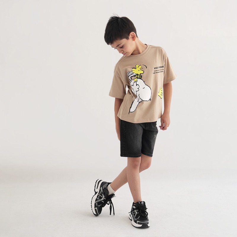 - جزئیات مدل: یقه گرد /گانت دوزی شده دور یقه /دارای چاپ طرح snoppy در جلو و پشت تیشرت(چاپ دارای لمه میباشد)/آستین کوتاه سرشانه افتاده/ قابلیت ست شدن با انواع شلوار کتان،جین و انواع شلوارک و دامن