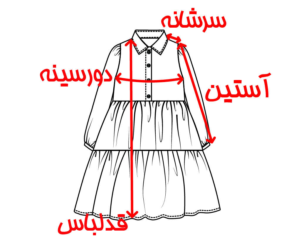 • قد پیراهن: قسمت راهنمای اندازه را بررسی بفرمایید.