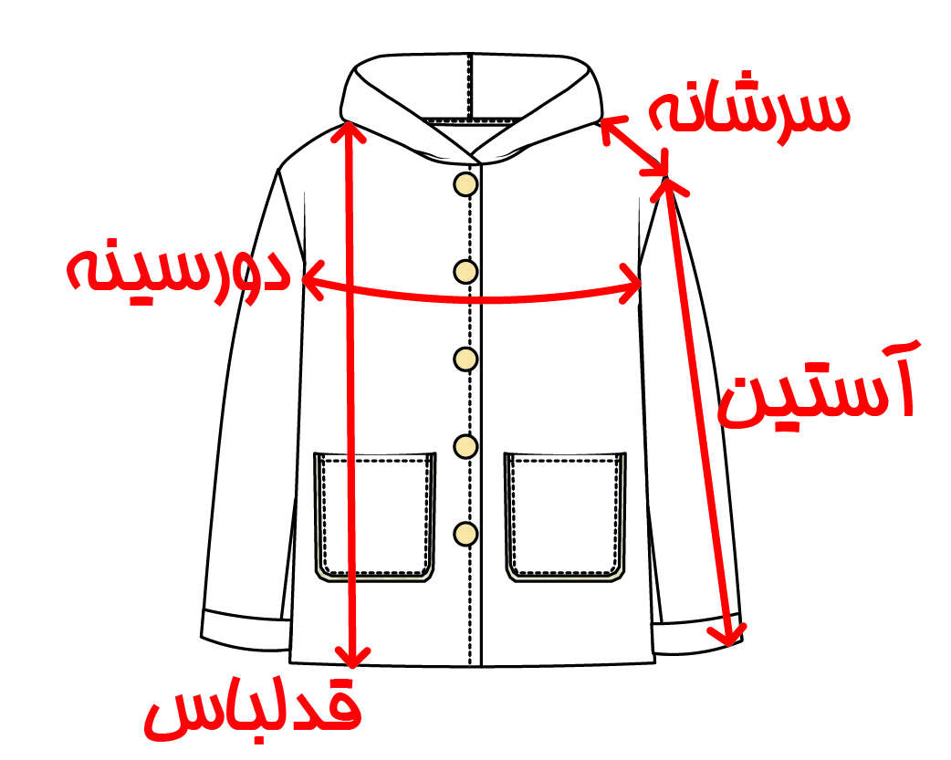 - اندازه پالتو: قسمت راهنمای انتخاب سایز را بررسی بفرمایید.