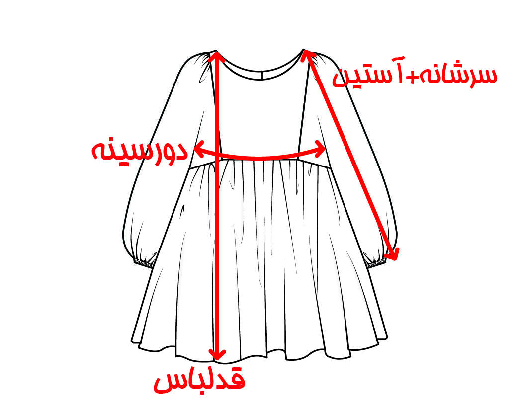 - قد پیراهن: قسمت راهنمای اندازه را بررسی بفرمایید.