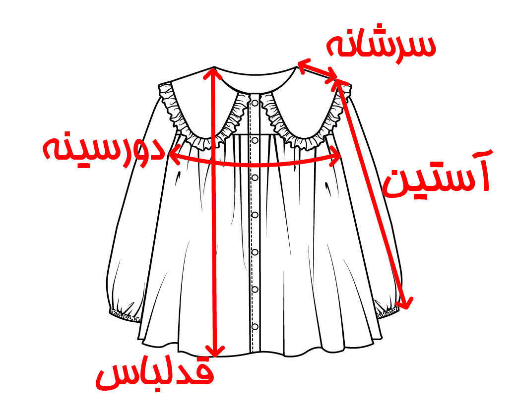 | سایز | دورسینه | قد آستین | سرشانه | قدلباس | دور کمر | |