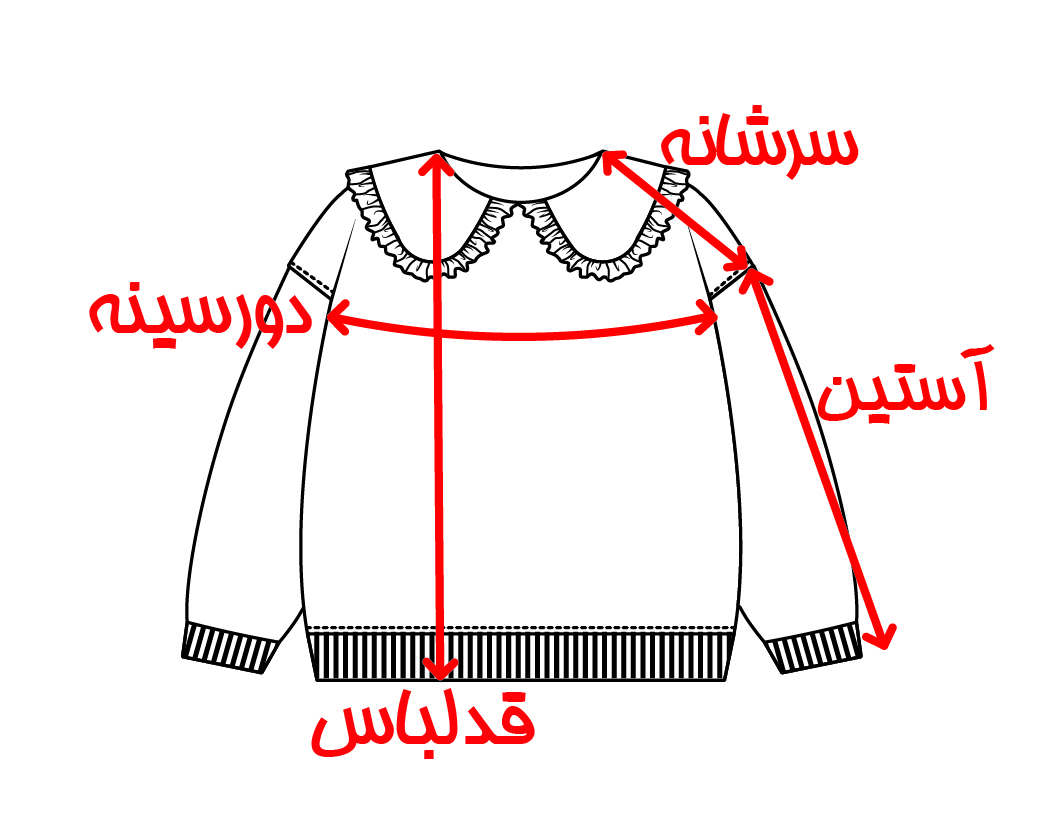 - اندازه بلوز: برای انتخاب سایز مناسب لطفا قسمت راهنمای انتخاب سایز را بررسی بفرمایید.