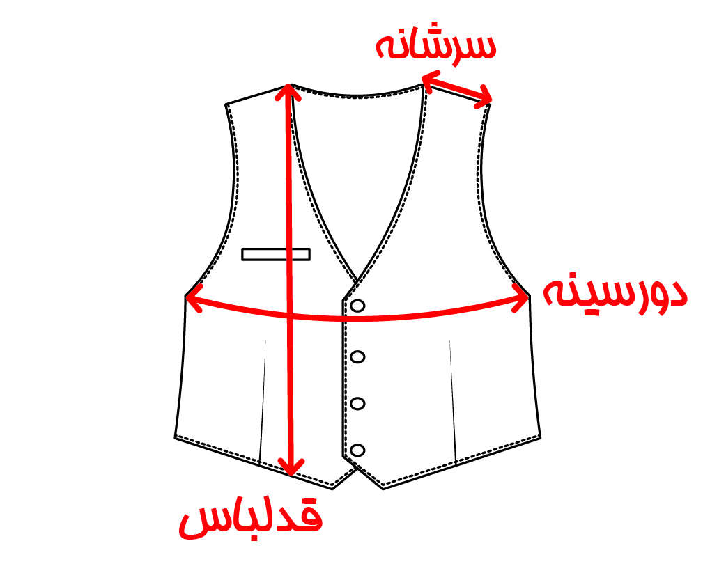 - قد جلیقه: قسمت راهنمای اندازه را بررسی بفرمایید.