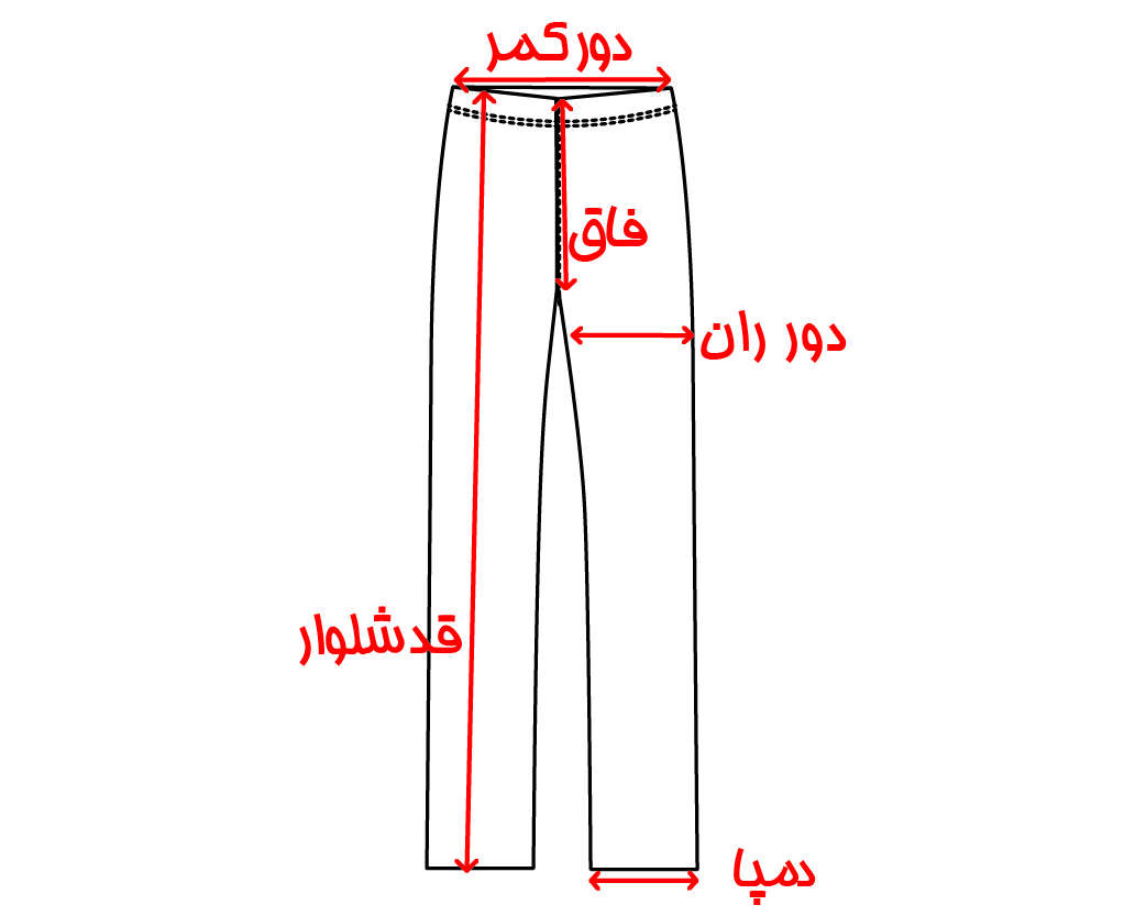 | سایز | دور کمر | قد شلوار | قد فاق | دور ران | دور دمپا | |