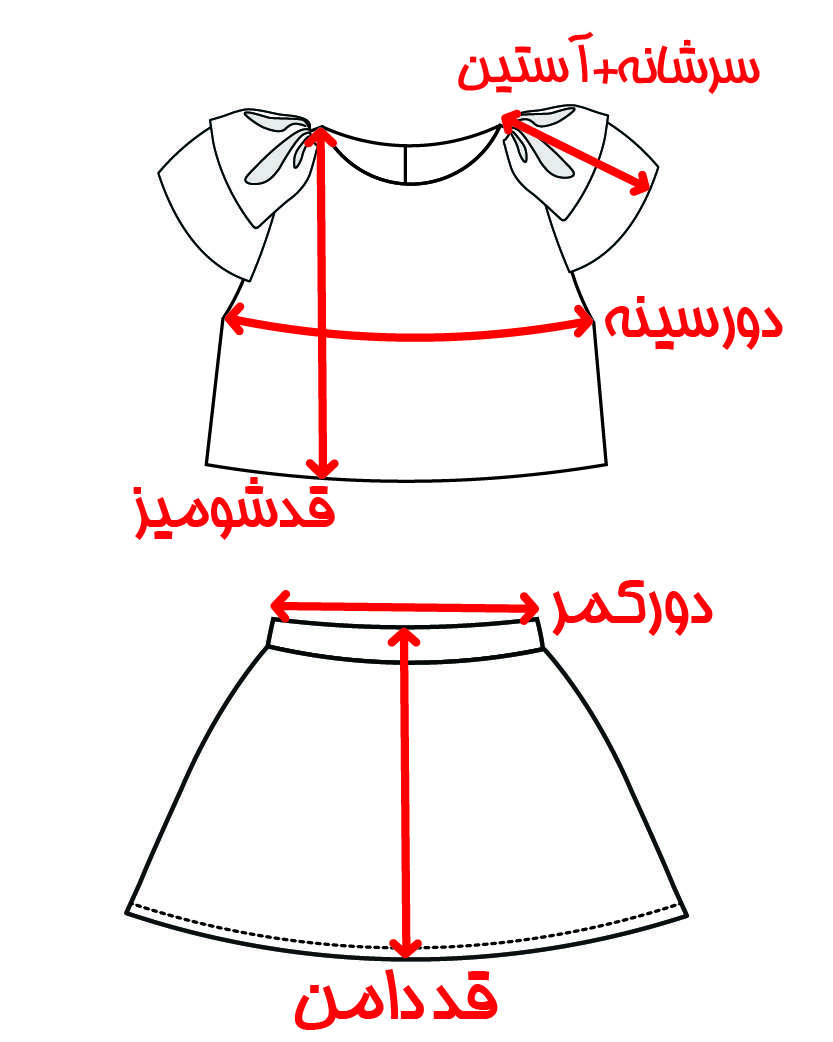 • قد پیراهن: قسمت راهنمای اندازه را بررسی بفرمایید.