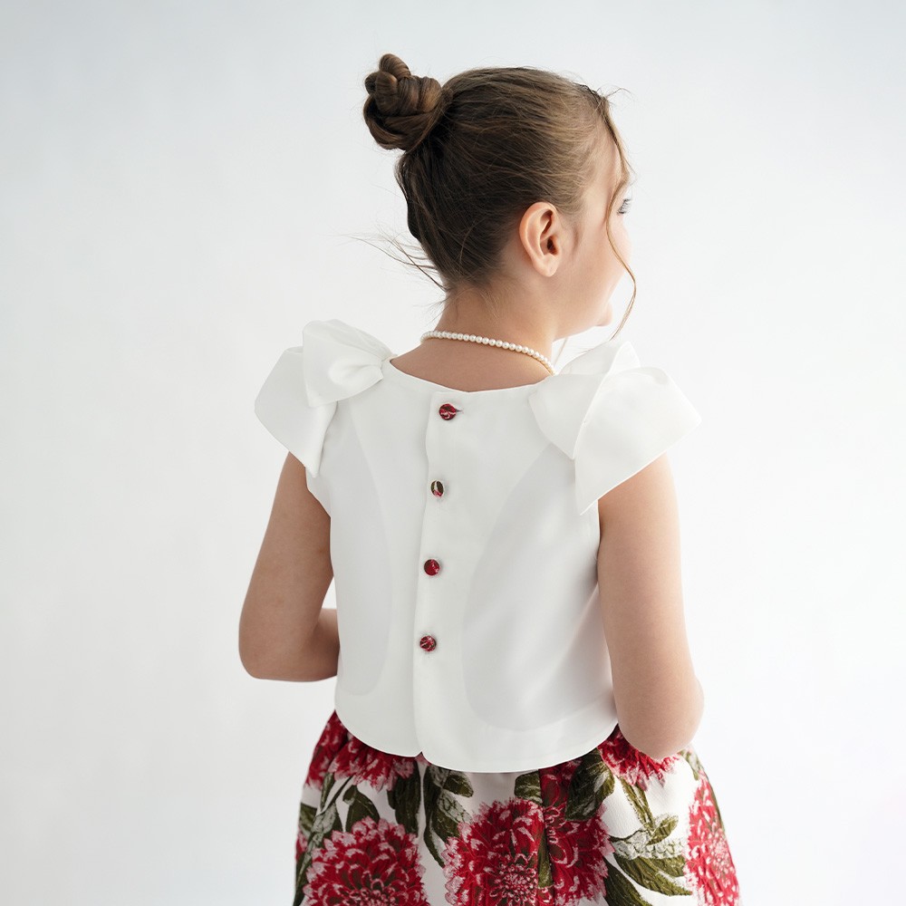 • جزئیات مدل: یقه گرد / دارای پیلی در جلوی شومیز/دارای دیتیل  دگمه پانچی همرنگ دامن  پشت شومیز/مناسب مراسم رسمی و مهمانی ها و دید و بازدید های عید نوروز