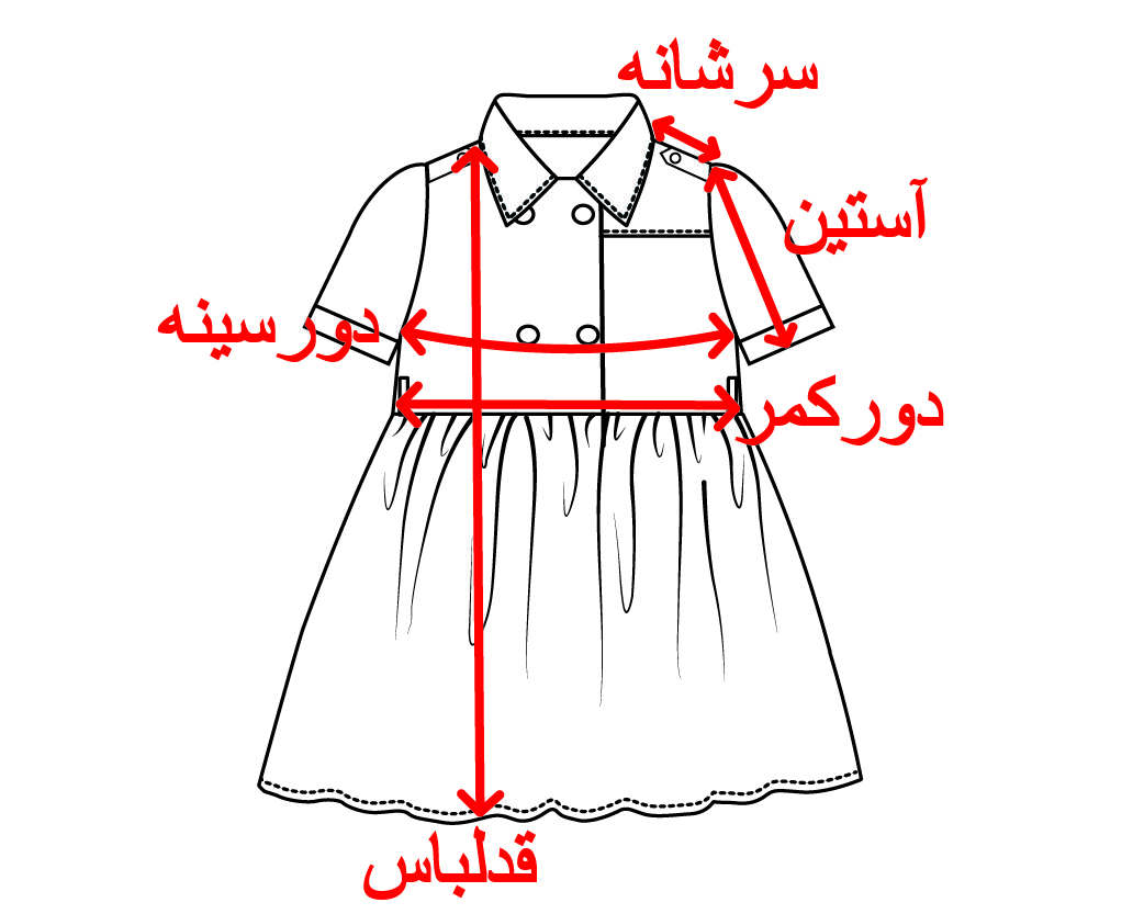 | سایز | دورسینه | قد آستین | سرشانه | قدلباس | دور کمر | |