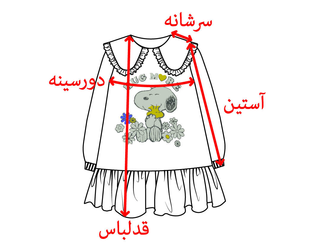 • جزئیات مدل:دارای کشبافت در قسمت مچ آستین/دارای برش و چین در قسمت پایین پیراهن/دارای دیتیل چاپ اسنوپی در قسمت جلو پیراهن/پارچه استفاده شده در قسمت یقه از پارچه پوپلین سفید میباشد/دارای چین در قسمت دور یقه ب.ب/دگمه پیراهن به داخل دوخته شده است برای راحتی کودکان/گانت دوزی شده در قسمت داخلی یقه/مناسب فصل بهار/مناسب استفاده روزانه