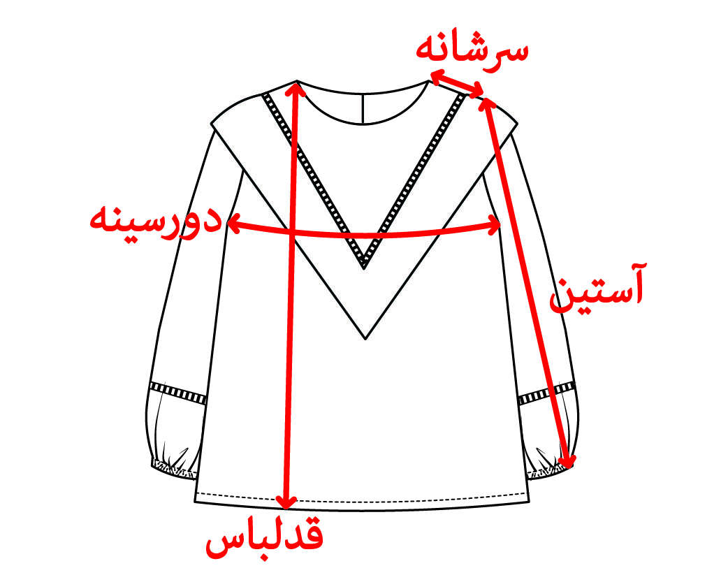 | سایز | دورسینه | قد آستین | سرشانه | قدلباس | دور کمر | |
