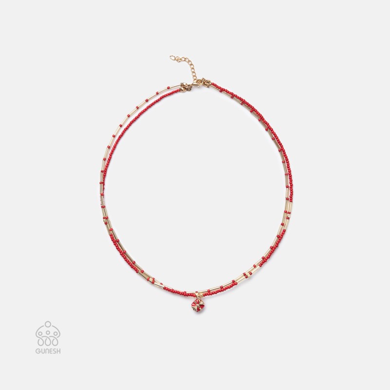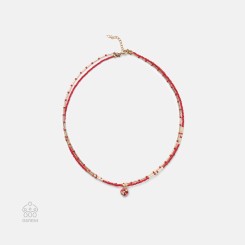• جزیات: سه ردیف ریسه از مهره سیلیکونی و منجوق و ملیله و کوی های فلزی/دارای پلاک  فلزی با طرح خای کریسمسی