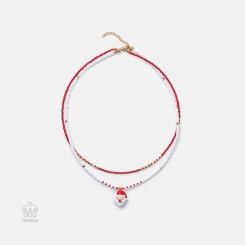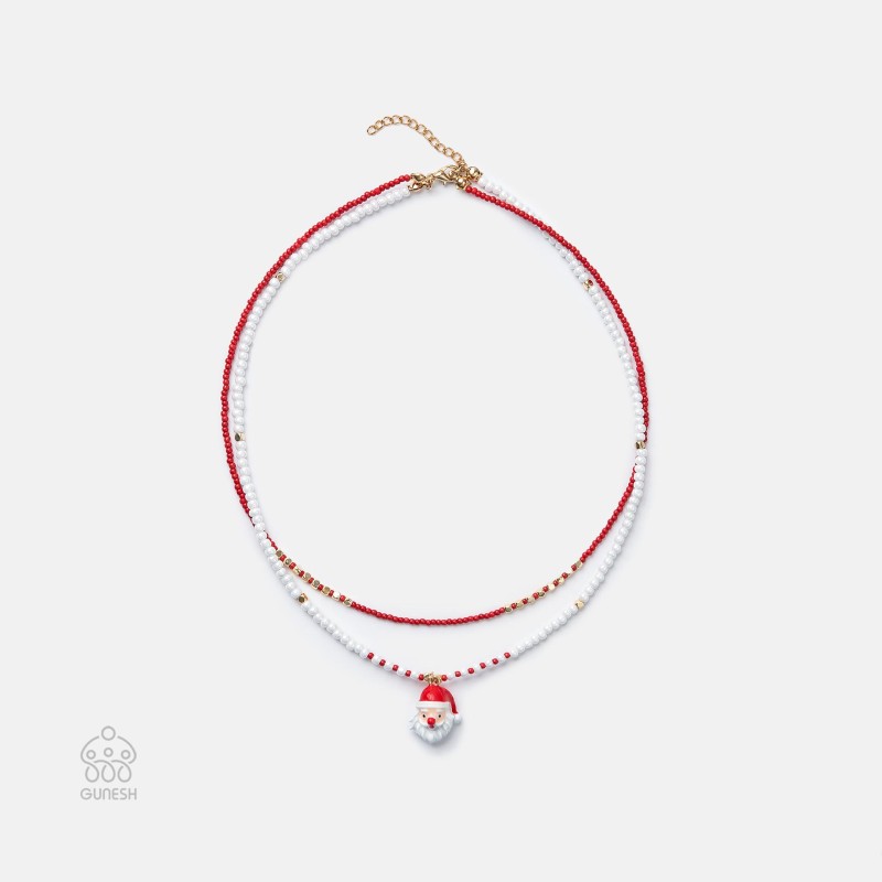 • جزیات: سه ردیف ریسه از مهره سیلیکونی و منجوق و ملیله و کوی های فلزی/دارای پلاک  فلزی با طرح خای کریسمسی