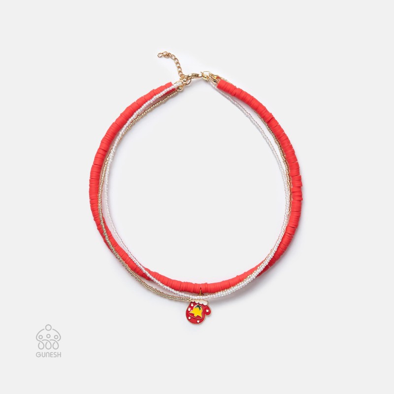- جزیات: سه ردیف ریسه از مهره سیلیکونی و منجوق و ملیله/دارای پلاک فلزی با طرح های کریسمسی