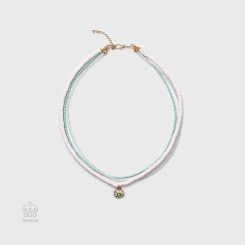 - جزیات: سه ردیف ریسه از مهره سیلیکونی و منجوق/دارای پلاک گل فلزی