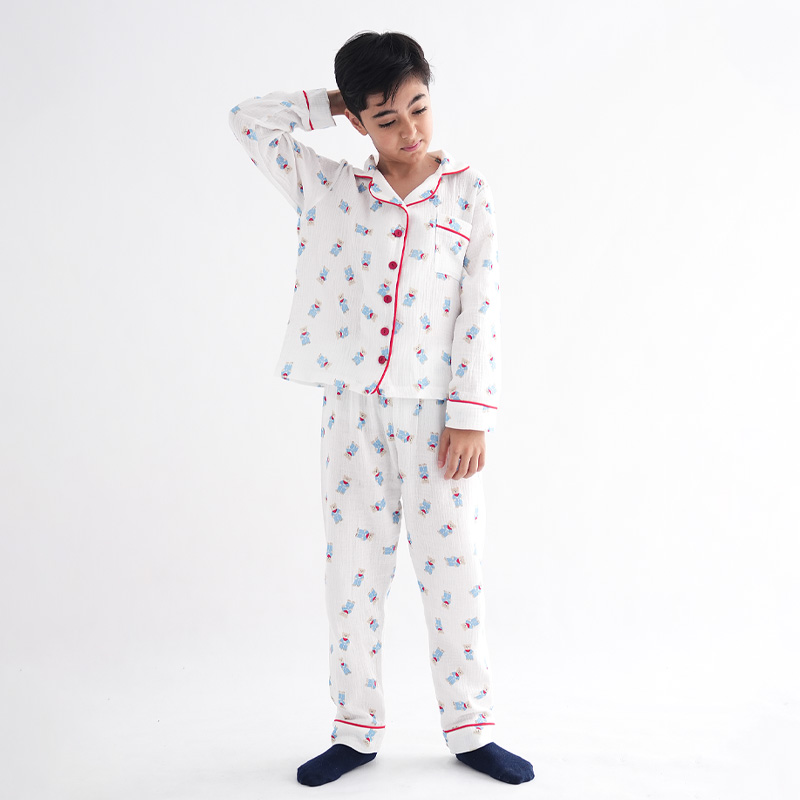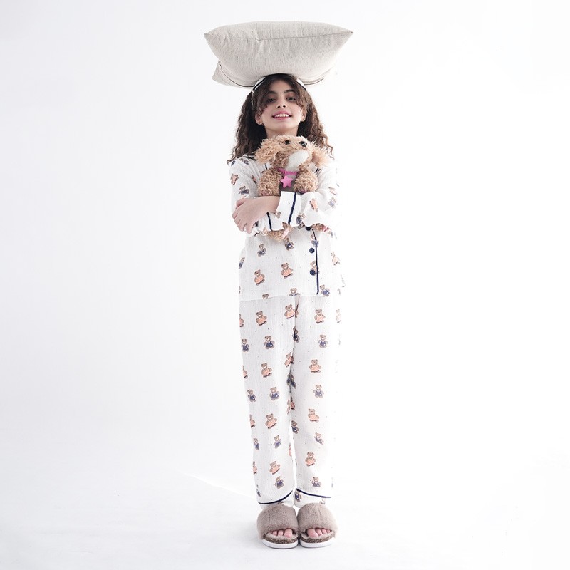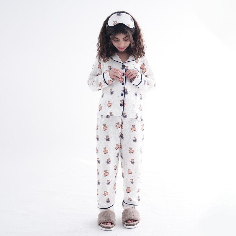 - جزئیات مدل: دارای برش و مغزی در قسمت مچ آستین/دارای مغزی در قسمت دوریقه و جلو بلوز لباس خواب/دارای برش و مغزی در قسمت دمپا شلوار/بسیار نرم و راحت/پارچه این ست از جنس پنبه ای میباشد که کاملا تنفس پذیر میباشد/رنگ زمینه تمام طرح ها سفید است ودسته بندی براساس طرح چاپ میباشد