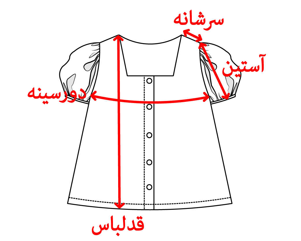 | سایز | دورسینه | قد آستین | سرشانه | قدلباس | دور کمر | |