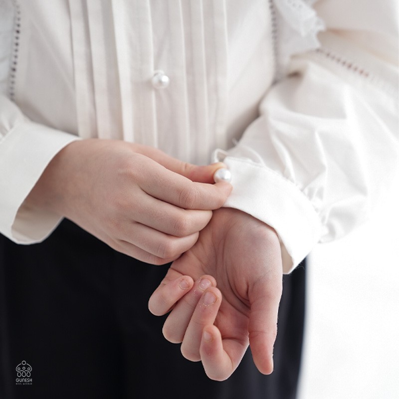 - جزئیات مدل: دارای دگمه در قسمت مچی برای بازوبسته کردن/دارای برش و نوار نردبانی در آستین/دارای چین در رقسمت مچی و کاپ آستین/دارای دیتیل دگمه مرواریدی/دارای پیلی در قسمت جلو شومیز/دارای نوار آمبرودی کتان چین دار و نوار نردبانی در قسمت برش جلو شومیز/دارای نوار آمبرودی کتان در قسمت دوریقه/گانت دوزی شده در قسمت داخلی یقه/مناسب فصل بهار - تابستان/ مناسب ست شدن باانواع شلوار - دامن - وست/مناسب مهمانی های عید و جشن تولدها