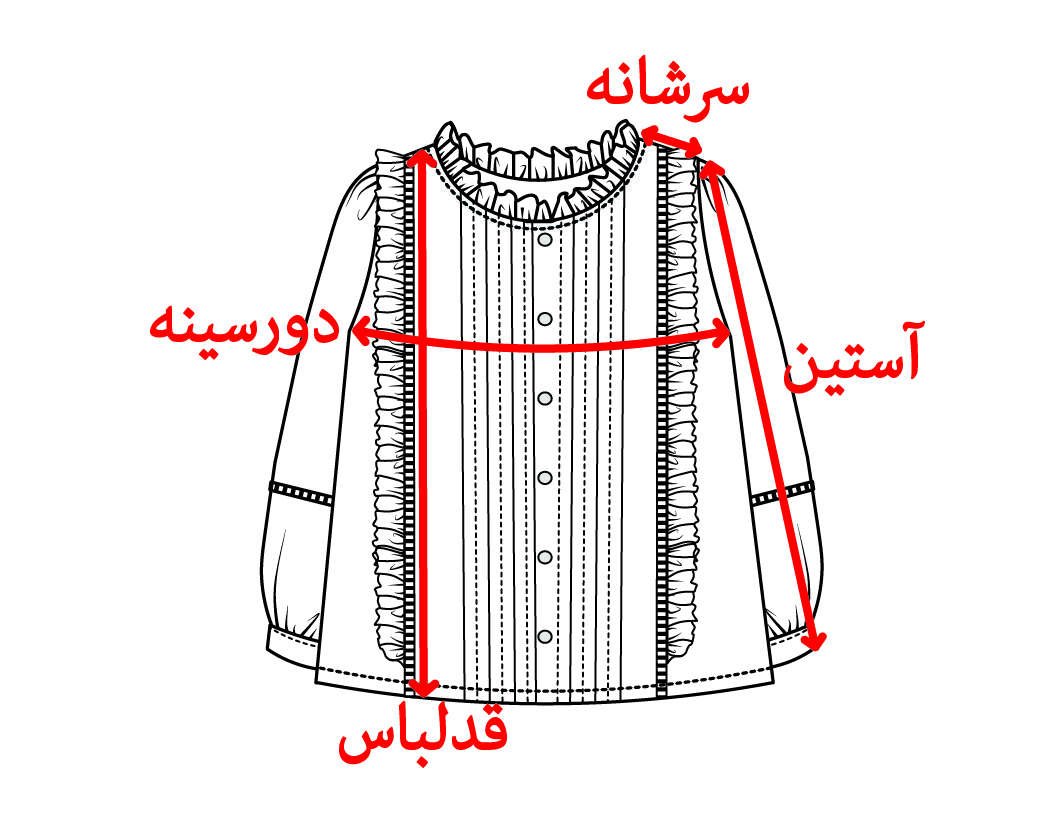 | سایز | دورسینه | قد آستین | سرشانه | قدلباس | دور کمر | |