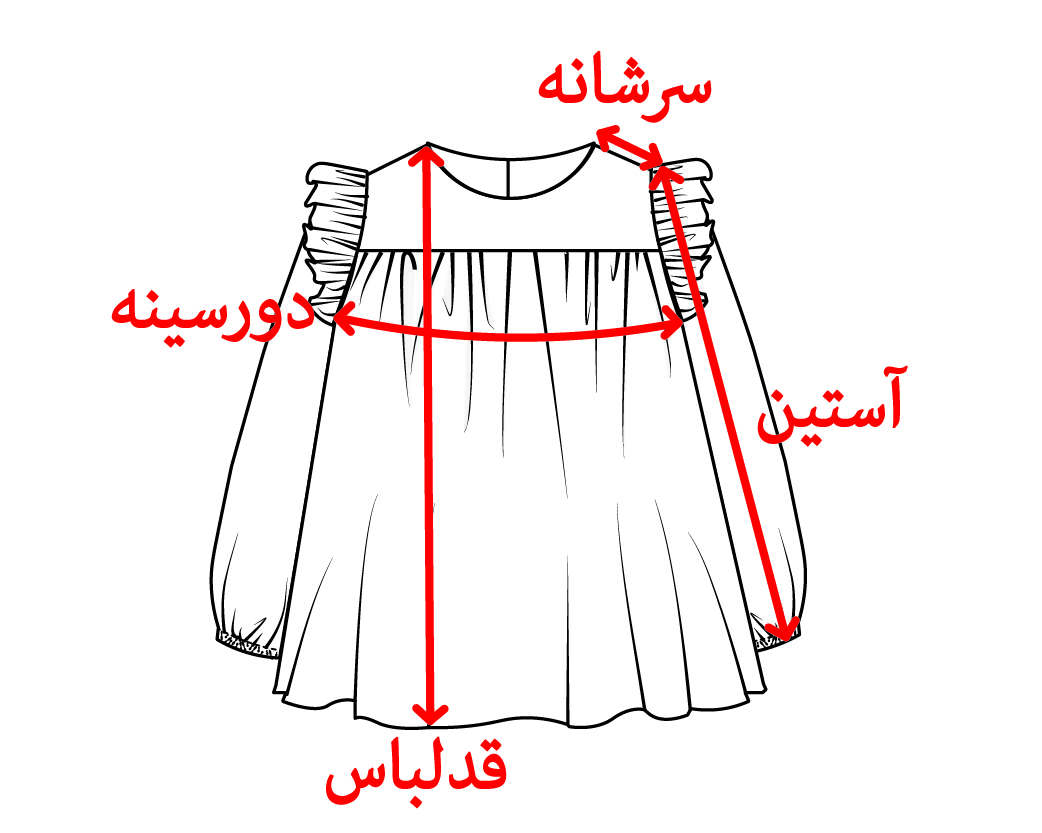 | سایز | دورسینه | قد آستین | سرشانه | قدلباس | دور کمر | |
