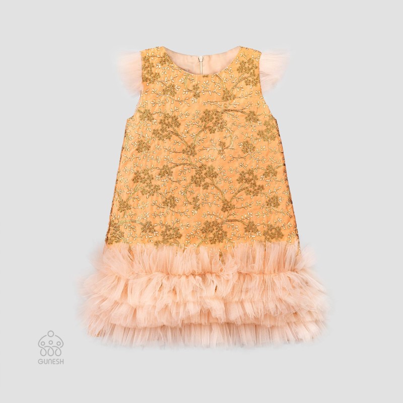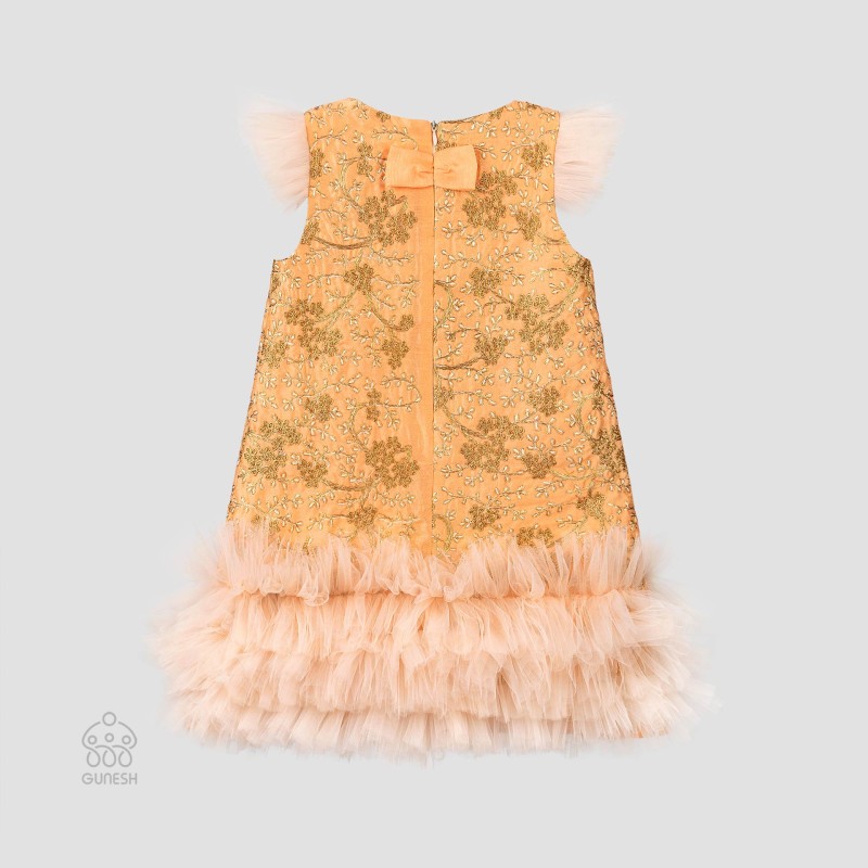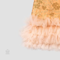 - جزئیات مدل: یقه گرد /آستین حلقه ای و دارای لب چین دار از جنس تورچند لایه/ قسمت انتهای پیراهن چند لایه توردوزی شده که باعث پف ایستادن پیراهن میشود/آستر دار/ مناسب مراسم رسمی و دید و بازدیدهای نوروز/مناسب فصل بهار و تابستان